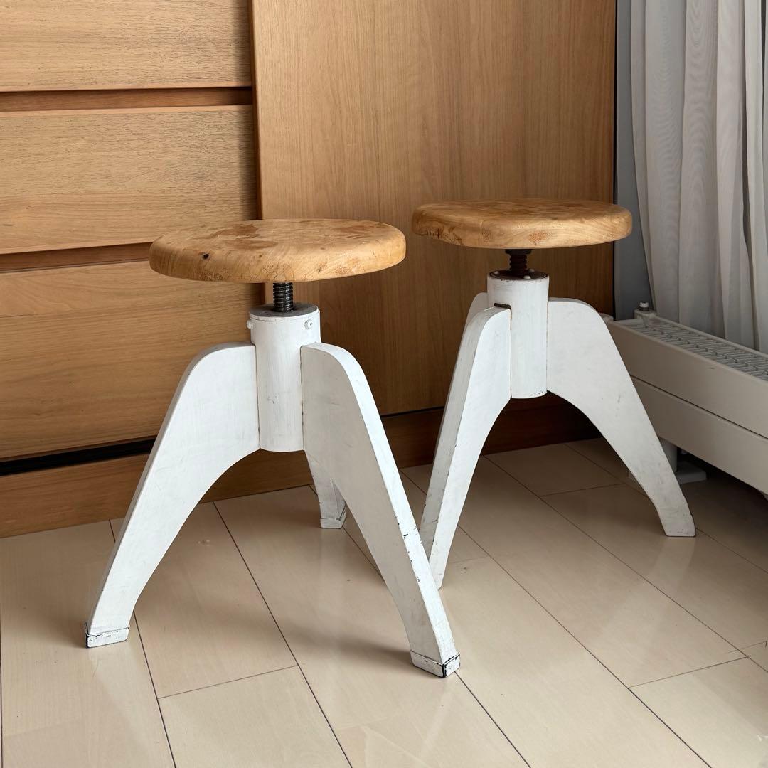 リペアした古い椅子です。座面に張ってあった藁の入ったビニールを剥がして、新しい無垢のパイン材(集成材)に張り替えました。ペイント部分は、もともとアイボリー&イエローで塗ってあった古い塗料をサンディングしてから、新たにアイボリーに塗り替えました。昔の手作りなので、ガタもなく作りはしっかりしています。椅子以外に観葉植物などを置く台にしたりベッドサイドに置いてもオシャレだと思います。◯ サイズ H67㎝ W35㎝ D36㎝ 座面高さ42㎝◯ アイボリーペイント 座面 Wood oil