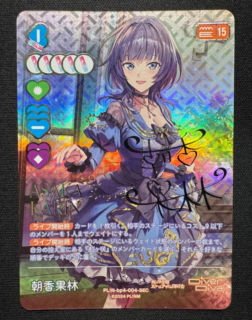 ラブライブオフィシャルカードゲーム 虹ヶ咲プレミアムブースター P+ 三船栞子 2枚セットです。開封確認後、すぐにスリーブに入れました。目立つ傷などはありませんでしたが、念の為目立った傷や汚れなしとさせていただいております。神経質な方はご購入をお控えください。必ずプロフィールをご覧になってから、ご購入をお願いいたします。即購入可です。検索用パラレルプラスセリフ箔押し