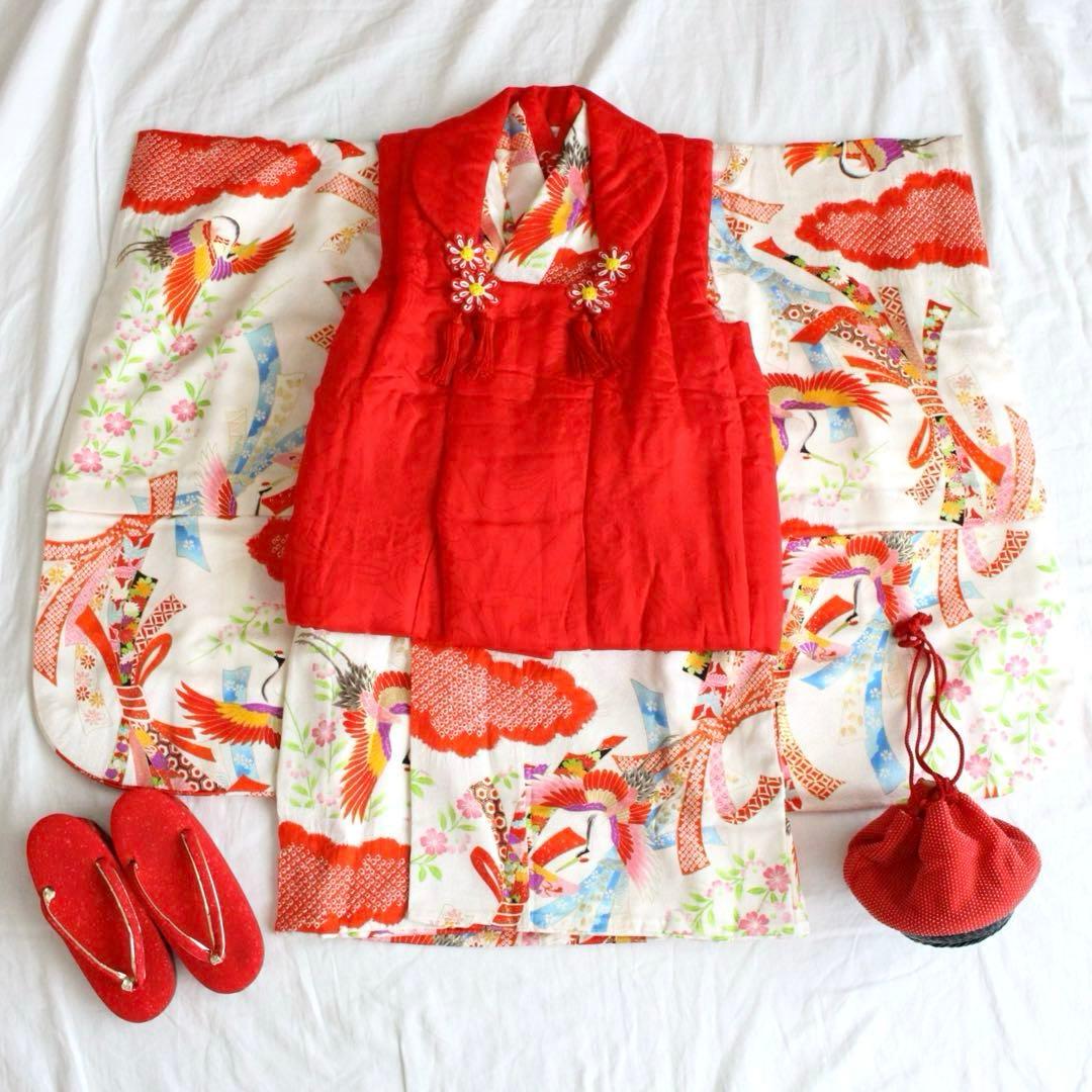七五三 お祝い着 祝着 四つ身 四ツ身 大四つ身\r女児 7才 七歳 卒園式\rお仕立て上り 長襦袢付き\r赤地 赤\r花柄 花 さくら 蝶\rポリエステル100%\r\r<寸法>\r身丈 約135cm\r袖丈 約75cm\r裄丈 約59cm\r\r未使用品ですが自宅保管していたものです。汚れ等見当たりませんが見落としがあるかもしれませんので気になる方はご遠慮ください。