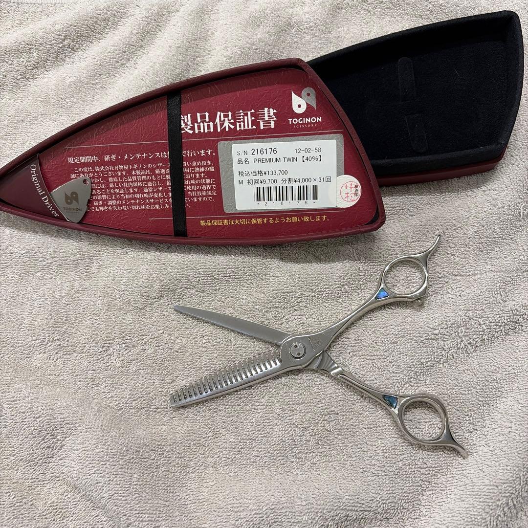 わかる範囲での情報です。購入して10人ほど使いました。切れ味は、健在です。オフセット型コブ付きのカットシザー。人工ダイヤモンド特殊ベアリングネジ搭載により、スムーズな開閉と軽さを実現。定価40000円ブラントカット向きのスタンダードタイプ。適度な硬さでしなやかな切れ味と、人工ダイヤモンドのネジが印象的。●サイズ:全長/約18.0cm、刃の長さ/8.3cm●素材:SUS440C●形状:オフセット型コブ付●刃型:ハマグリ刃●重量:約62g●ネジ:人工ダイヤモンド特殊ベアリングネジ