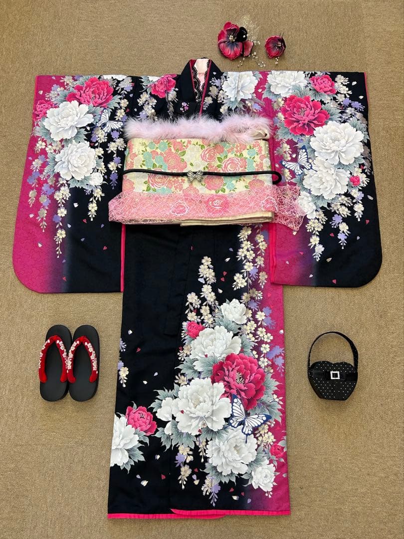 美品★三歳五歳七歳★爽やかな黄緑の花柄着物 楽天市場】【レンタル】753 七五三 着物 7歳 フルセット 女の子
