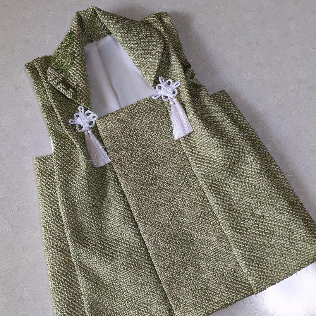 【商品説明】\r●正絹女児用振り袖着物襦袢半衿付\r緑色地に可愛いおしどり、花柄の着物と大きな梅柄の襦袢の付いた逸品になります。お直しをして七五三7歳に如何でしょうか。\r\r【商品状態】\r●目立つような大きなシミ、汚れはございませんが1箇所裏地に小さなシミあり(画像16)と襦袢の結び紐に薄黄ばみが見られます。リユース品になりますのでご理解頂きあまり神経質な方のご購入はご遠慮下さい。\r●色ヤケ、シミ、汚れなど使用に支障のある事項はできるだけ記載、撮影するよう努力しておりますが、表記にない事項がある場合もございますので何卒ご容赦下さい。m(_ _)m\r●サイズ\r身丈約129㎝\r裄丈約58㎝\r袖丈約68㎝\r袖幅約30.5㎝\r\r●素材\r着物 正絹襦袢 正絹\r\r\r●ご利用環境・撮影環境によって画像とお色みが異なる場合がございますのでご理解ください。許容範囲を持って頂き画像にてご判断下さい。\r\r【注意事項】\r●トラブル防止の為、ご不明な点がございましたら、ご遠慮なくコメント欄よりお問い合わせください。\r\r●他サイトにも出品しておりますので\r先に売れてしまう事があります事をご了承下さい。\r\rご購入心よりお待ちしております。\r宜しくお願い致します。m(_ _)m\r\r\r着物\r七五三\r女児用\r作り帯\r飾り帯\r和装品\r袋帯\r名古屋帯\r和装品\r年齢...7歳\r和服種類...着物\r和装小物...その他