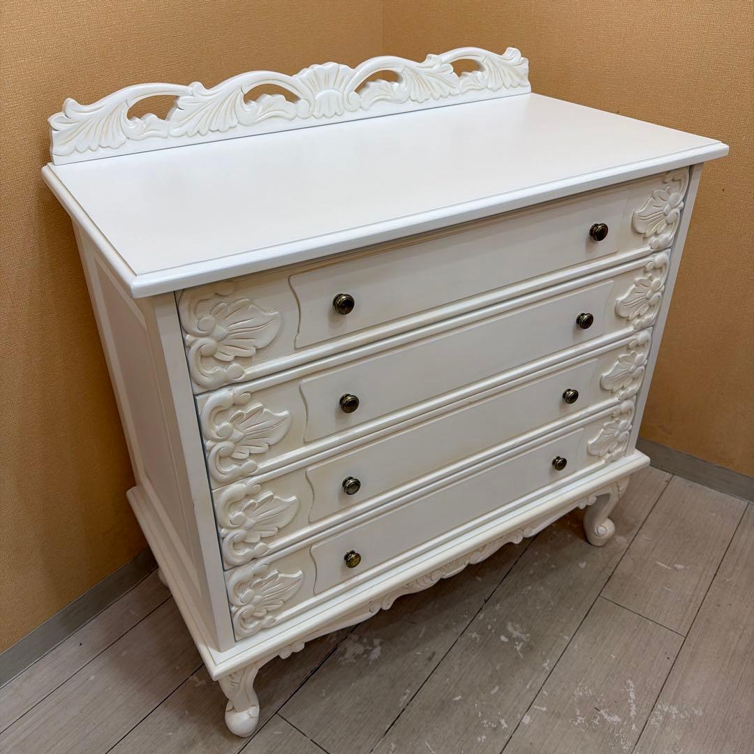 メーカー/ブランド MITSUKOSHI(三越家具)/Country House(カントリーハウス)商品名 Brugge(ブルージュ) 4段チェストサイズ 幅/135×奥行/45×高さ/88cm 引き出しの奥行/38 cmワンランク上の英国カントリー家具、三越ブルージュシリーズの4段チェストです。オーク材の木目がとても優雅で木の温かみを感じられ高級感があります。設置場所を選ばず、リビング 、ベッドルーム、ダイニングにもマッチします。古いものなので、わずかなスレや使用感はありますが、大きなダメージはなく、非常に良好なコンディションです。引き出しの開閉も問題ございません。