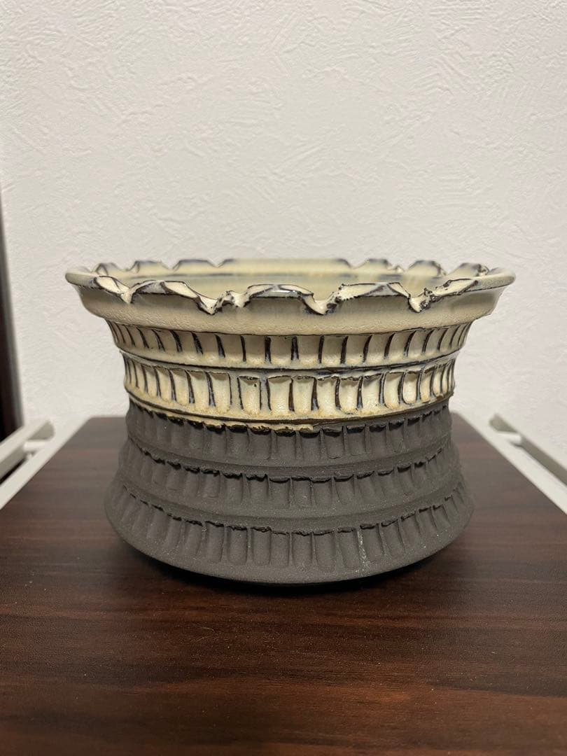 カタチ製作所Mederu pot クラックレザーDripper \"ドリッパー\" 二点セット約∅13cm×H11cm屋内にて数週間~数ヶ月使用したものになりますので、若干の擦れ汚れキズ等の使用感がございます。使用上問題のあるようなヒビ等はありません。若干欠けがあります \"画像4枚目\"■ご注意≪プロフィール御一読、ご納得の上ご購入下さい≫底面に穴があるプランツ用の鉢(ポット)です。焼き物の特性上により、サイズ・色・形・表面加工などに個体差があります。新品未使用品の場合でも、使用上問題のないキズ等がある場合がございます。購入時のレシート等はありませんので、画像にてデザイン、状態等ご判断下さい。商品受取り後12時間以内に商品の確認と評価をお願いします。セット品のバラ売り不可すり替え防止の為NCNR !リサイクル ダンボール、エアクッション等にてしっかり梱包させて頂きますが、万が一到着した商品が破損していた場合には、配達担当者へ連絡して頂きます様宜しくお願い致します。\"ゆうパック補償対応\"着払いのみの発送とさせて頂きます。(元払い不可)3/3/3#valiem#バリエム#supreme#青坊主#aobouzu#大貫弘由岐#沼野秀章#有馬和博#野中麟太郎#船串篤司#川嵜貴生#宮下将太#内田裕太#ytyf_ceramics#spicygem#botanize#srl_neighborhood #インビジブルインク#invisible_ink#HAKIJO_STUDIOS#raw_life_factory#ローライフファクトリー#SRL#カタチ製作所#サボテン#黒王丸#humanity#goujin#neoshiho #noh#toky #パキポディウム#グラキリス#チタノタ#アガベ#パキプス#オペルクリカリア#コピアポア#ビザールプランツ#塊根植物#サボテン#多肉植物#コーデックス#灌木#コミフォラ #オトンナ#ガーデン#アイアン#雑貨#木製#植木鉢#作家鉢#陶器鉢#鉄鉢#鉢#pot