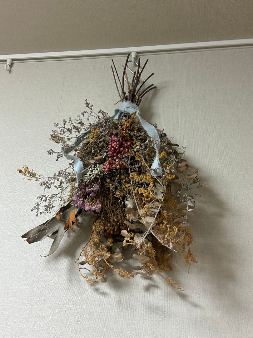 ~ご覧頂きありがとうございます〜 ※1点のみの出品です(^^)白いコットンとリューカデンドロのサファリサンセットピンクのつぶつぶがかわいいペッパーベリーなどをメインに冬へ向けてお作りしました沢山の種類のドライを使用しましたベースはユーカリポポラスやほんのりピンクのセロシア大人かわいいシックな印象のタペストリーです今年はいつもと違うテイストのものを…そんな時に飾って頂いきたい タペストリーです[使用花材]下記参照[おおよそサイズ]29×45 ㌢(下がるつる含む)******************************ドライフラワーは性質上、輸送中に花散りなどが起こる場合があります届いたあともドライは進みます変化\"ドライの良さ\"をお楽しみくださいご理解頂けますようお願いいたします*******************************[使用花材]#コットン#リューカデンドロ#ペッパーベリー#ユーカリポポラス#ラムズイヤー#セロシア#ディコンドラシルバーフォールズ#シャリンバイ#ユーカリの実#シダローズ#メタセコイア#シック#大人かわいい#ドライフラワータペストリー #秋冬#クリスマス#くすみピンク#新生活 #ボタニカル#ユーカリ #贈り物 #プチギフト#インテリア雑貨 #誕生日プレゼント#結婚祝い#インテリア