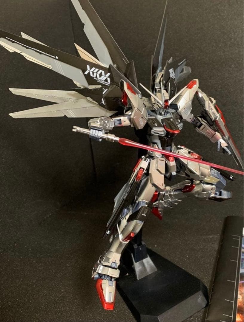 HG ブラックナイトコードジバ×ストライクフリーダム ジオラマのセットで出品させて頂きます。作成にあたってブラックナイトコードジヴァは首、腕、足の部分を延長加工。全体をヤスリがけした後に、エアブラシを使用しての全塗装。シールで塗り分けの部分についても塗装しています。水転写デカールの後にウオッシング、ドライブラシを行い、無光沢トップコートで保護しています。キットには無い平手も追加しています。ストライクフリーダムも首、腕、足を延長加工。その後にダメージ加工の後、グレートーンに筆塗装。ウオッシングとドライブラシの後、無光沢トップコートで保護しています。腕の延長にあたり若干外れやすくなっていますのでお気をつけください。ジオラマの部分はフォトフレームを土台にスタイフォームと粘土を使用し成形。アクリルガッシュ塗料やウエザリングマスターで塗装をしています。発送にあたっては一部を分解の上、梱包材を使用し送らせて頂きますが、到着後の破損につきましては購入者様での修繕をお願い致します。趣味で作成しているものの為至らない点も多くあるかと思いますがご理解頂ければ幸いです。他のフリマサイトでも出品予定です。急な削除もございますのでご了承ください